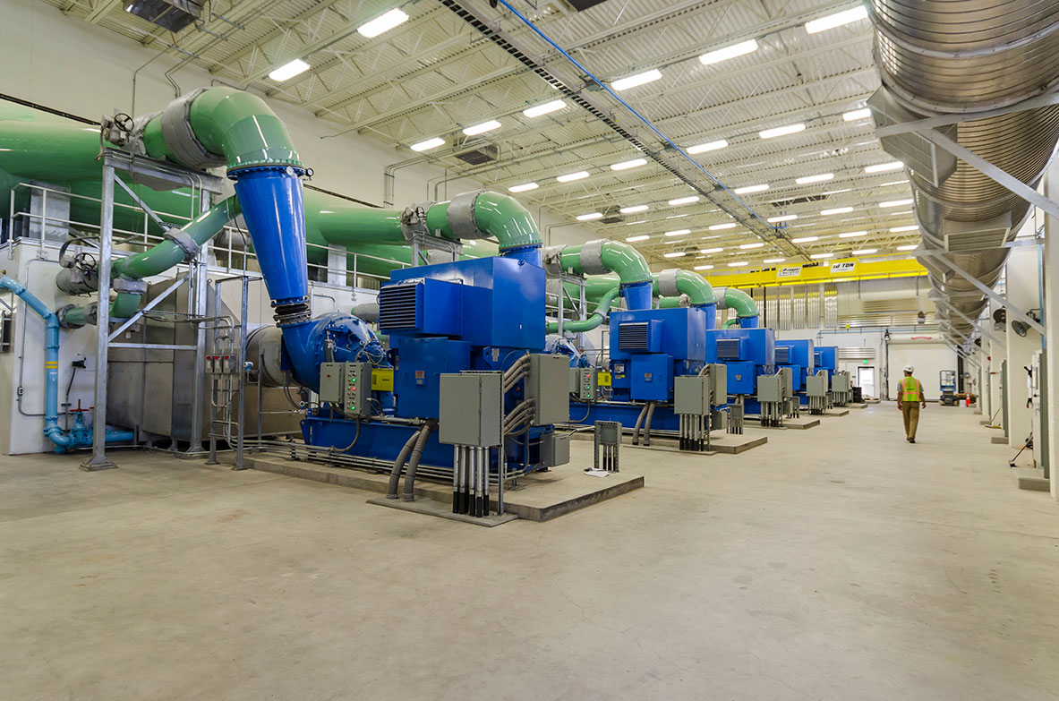 - Five 29,000 scfm, 2,000 HP single stage centrifugal blowers.
