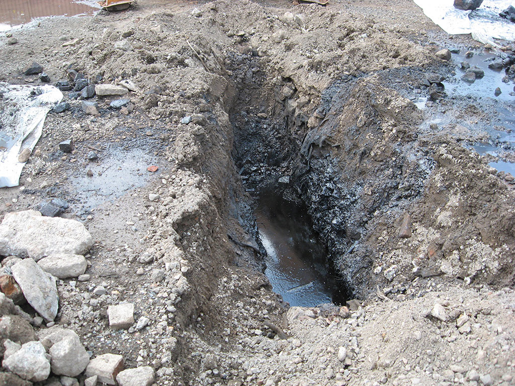 Pilot Test Installation. The extent of contamination is evident during installation of wells and use of test pits.