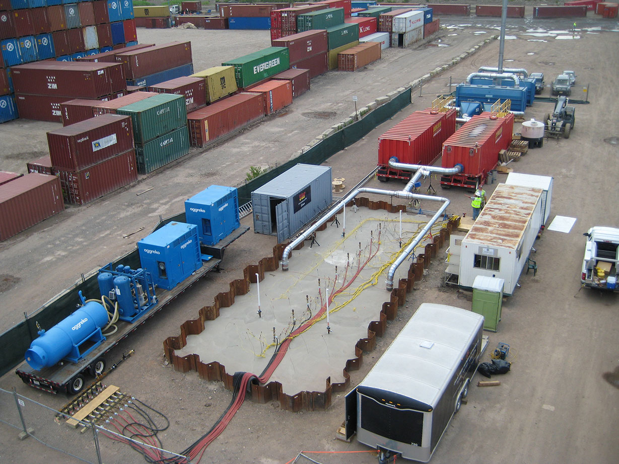 Our full-scale remedy included construction of unique integrated equipment to manage air injection and extraction (at over 3,000 standard cubic feet per minute), mobile and stationary power, downhole heater control, management and measurement of combustion gases, monitoring of in situ combustion temperatures, and vapor collection with emission treatment and monitoring.